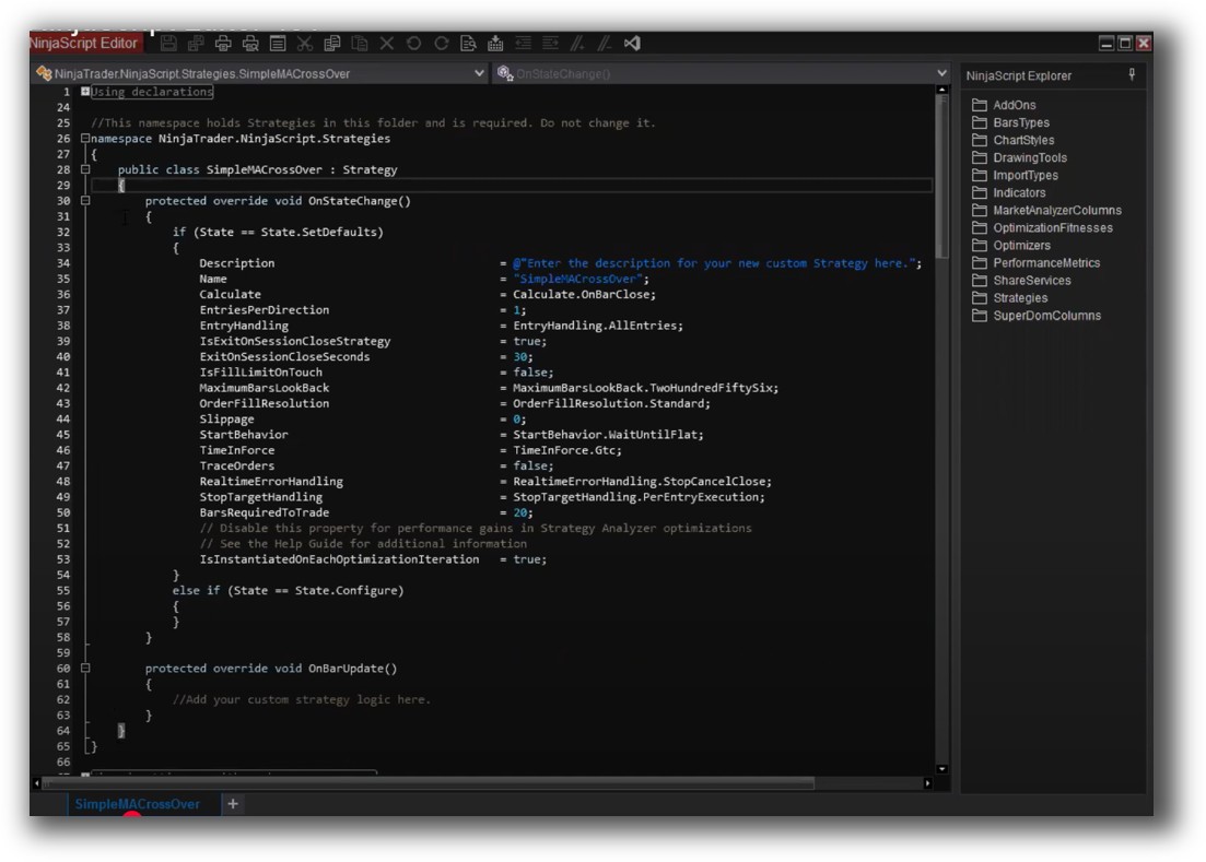 - NinjaTrader uses NinjaScript, a C#-based language that offers great control but requires more development time. Building complex systems like long/short trend following or mean reversion strategies can be done – but you’ll need solid programming skills.