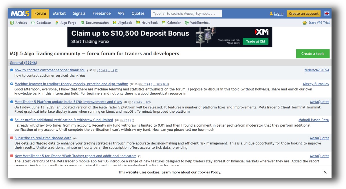 MetaTrader 5 Forum Front Page is illustrated down below: