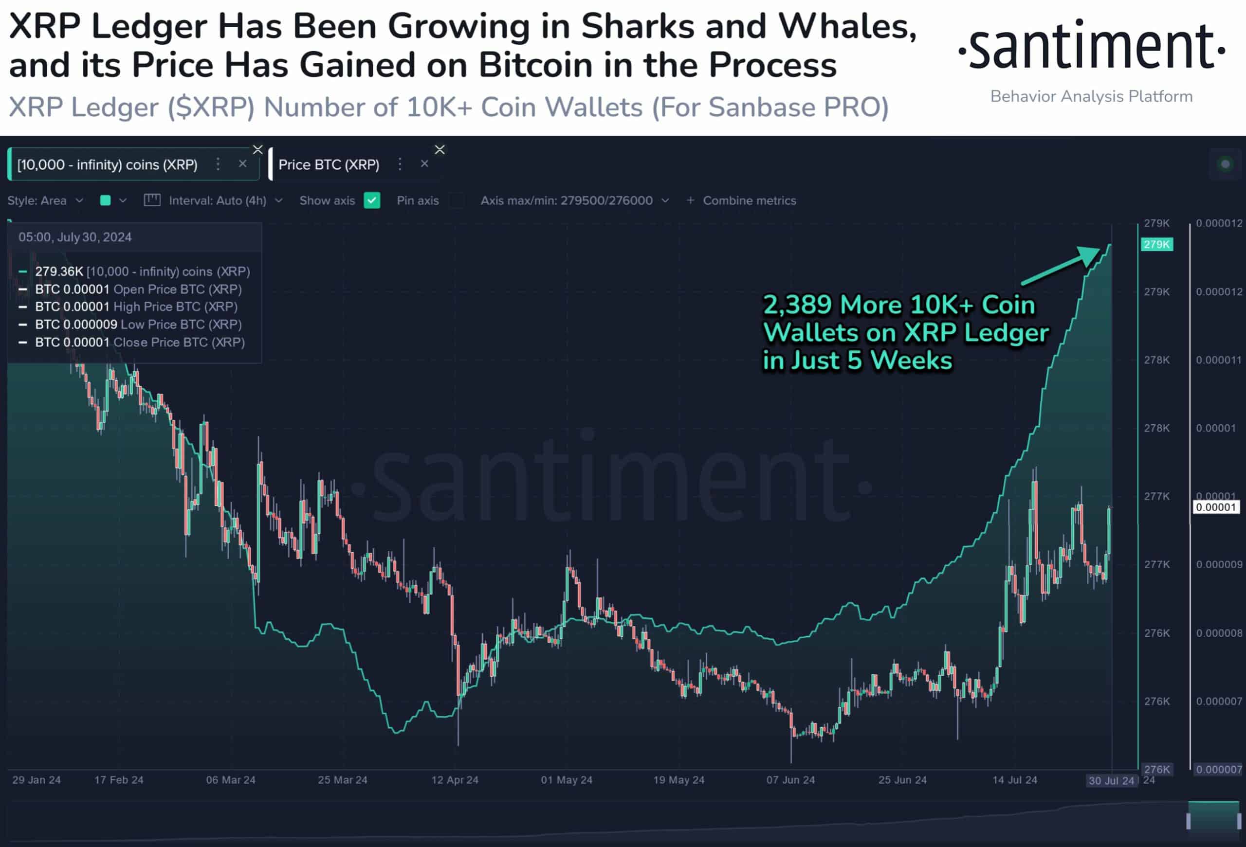 On the 30th of July, crypto analytics platform Santiment reported that the number of wallets holding at least 10,000 XRP has reached a six-month high.