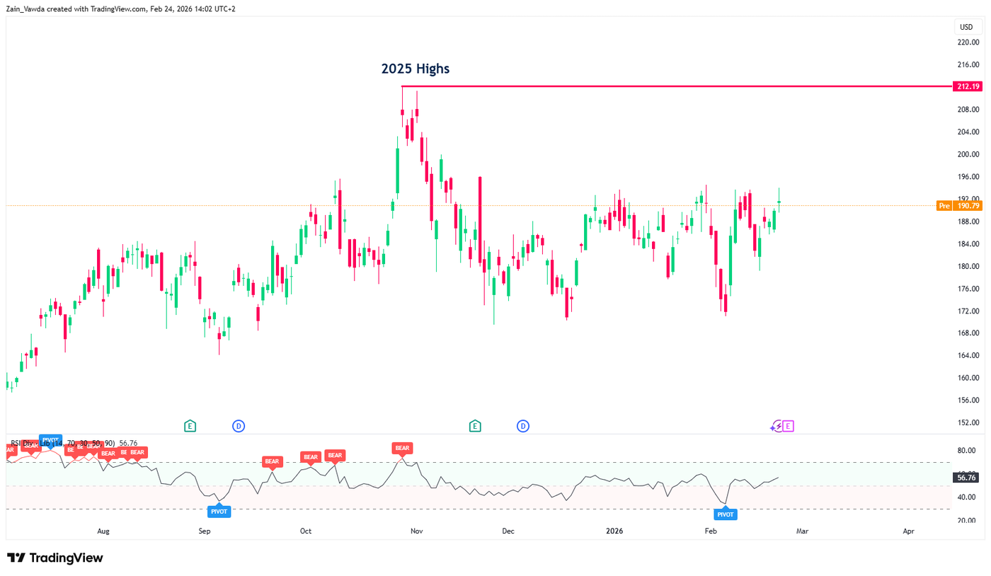 NVIDIA (NVDA) Daily Chart, February 24, 2026