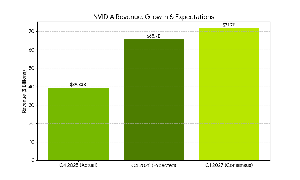Revenue: Consensus estimates sit at $65.6 billion to $65.7 billion, representing a roughly 67% increase year-over-year.