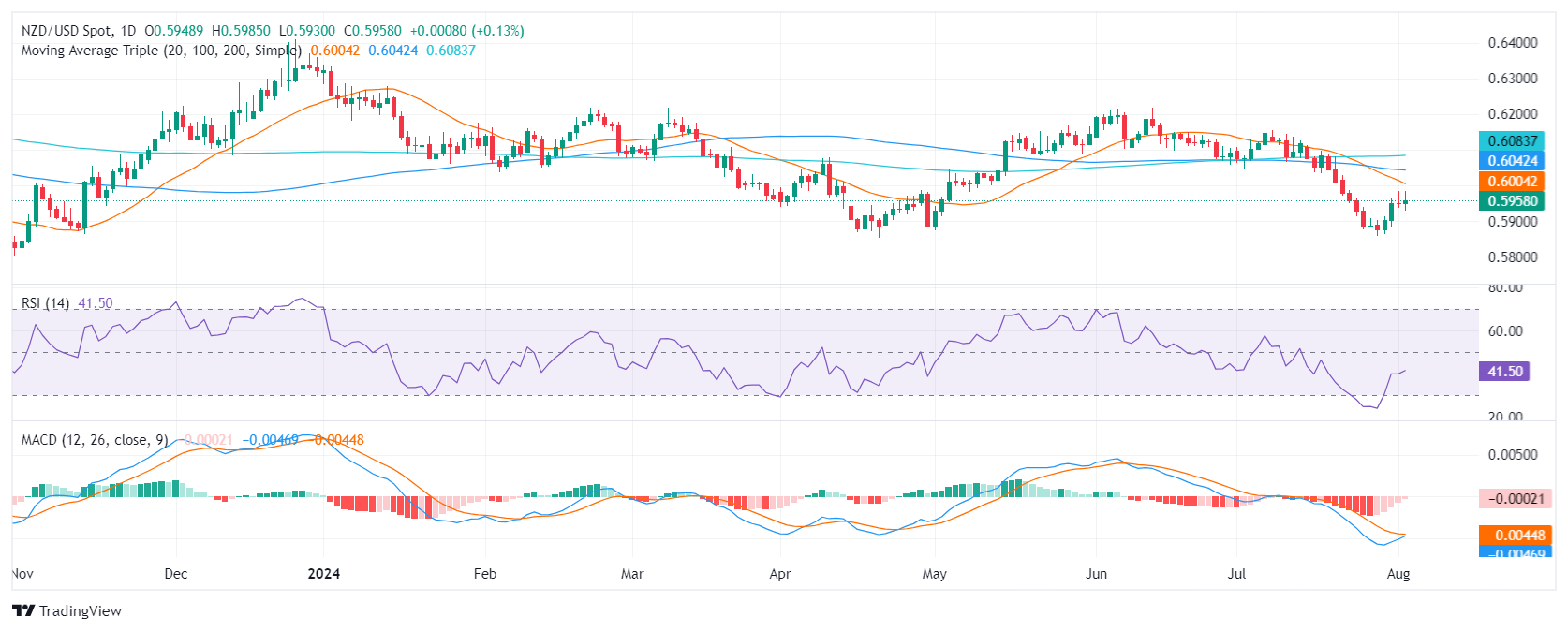 - Despite the predominantly bearish trend, NZD/USD exhibits signs of a mild rebound.