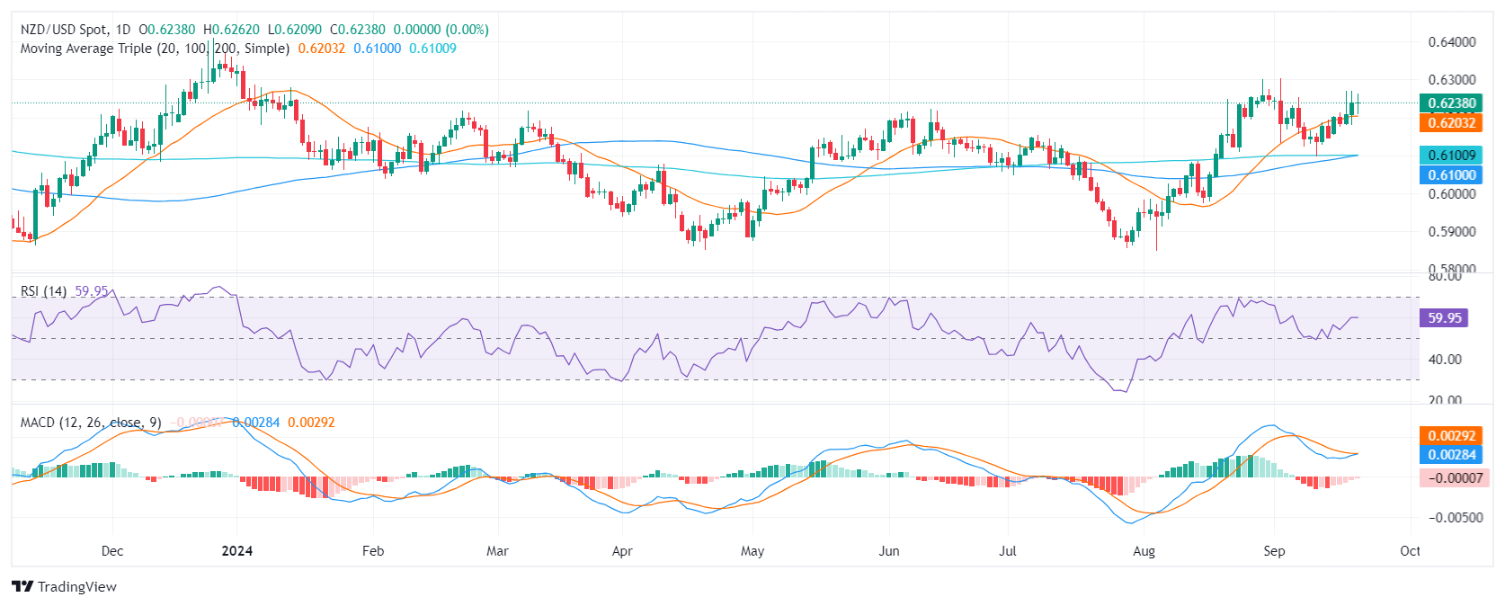 Key support levels include 0.6150, 0.6120, and 0.6100, while resistance levels are 0.6190, 0.6200, and 0.6230. A close above the 20-day SMA, currently at 0.6200, could signal further upward movement with the next target being at early September highs near 0.6300. In addition, traders should monitor the 0.6100 area as the 100 and 200-day SMAs are about to perform a bullish crossover. That could serve as a bullish confirmation and might trigger another upwards leg.