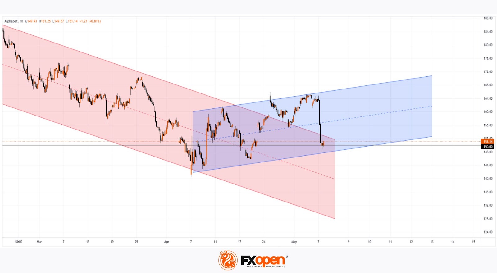 In our 23 April analysis, we identified a descending price channel and emphasised the psychological significance of the $150 level, which had served as a key support in 2024.