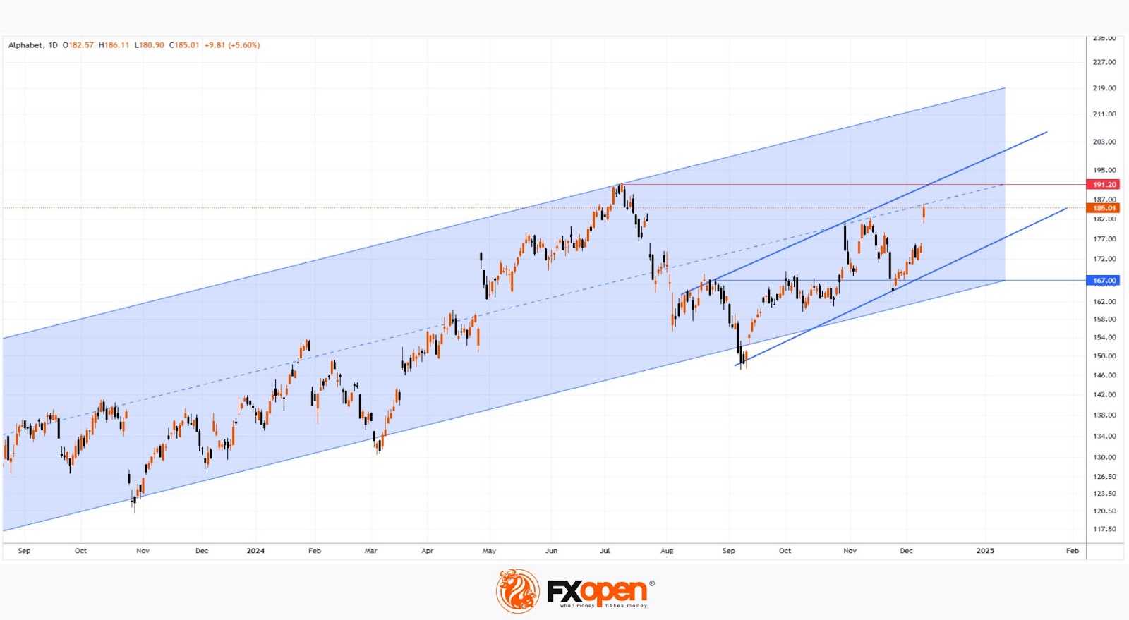 On 22 November, when analysing the price chart of Alphabet Inc. (GOOGL) shares, we: