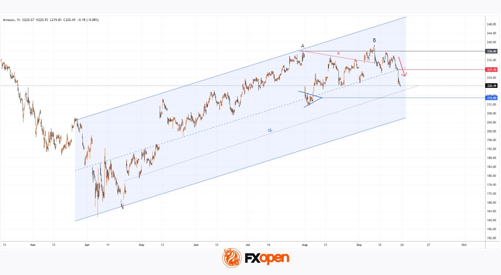 Amazon’s share price dipped below $220 yesterday for the first time since 12 August. Could the decline continue?