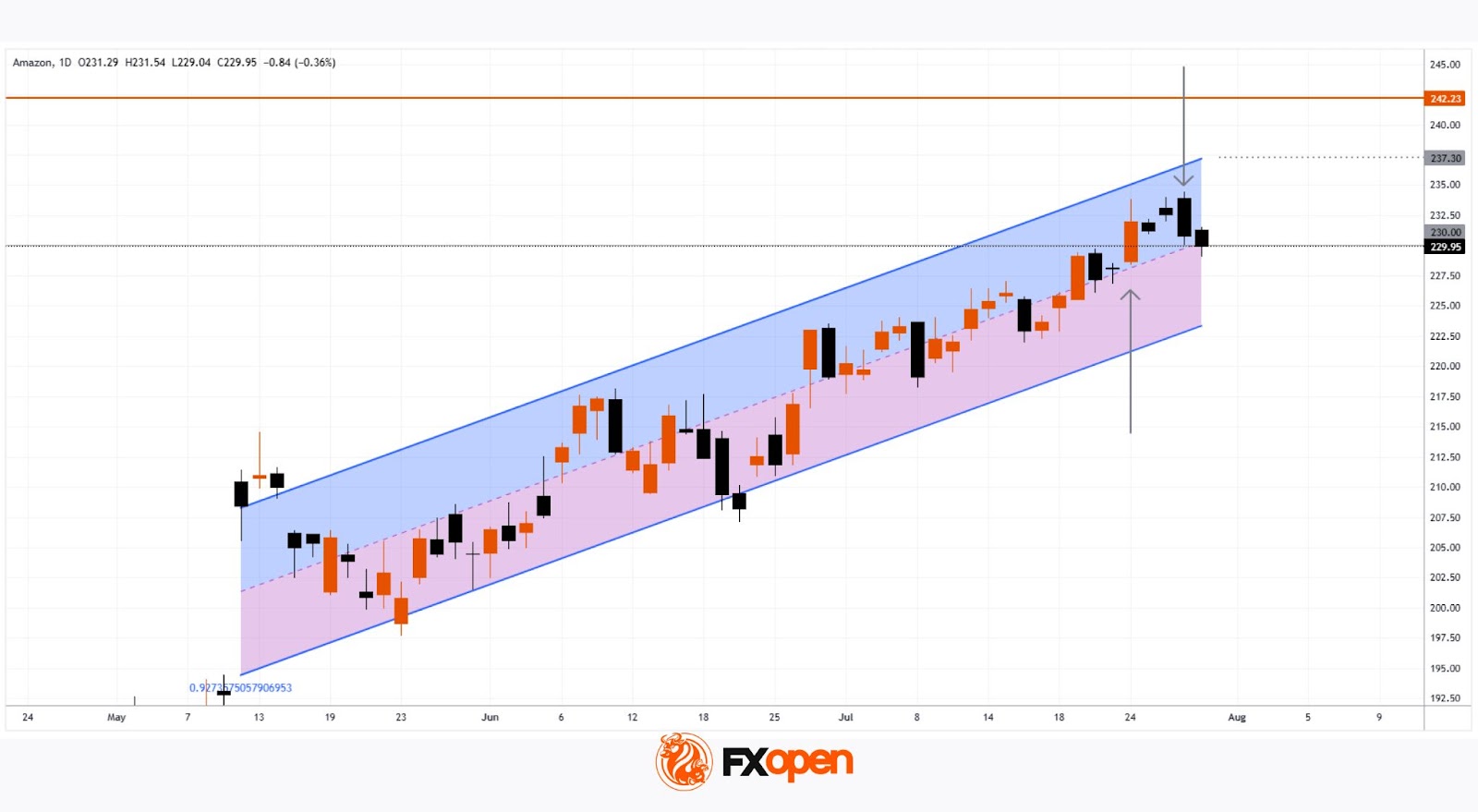 → In July, AMZN shares have outperformed the S&P 500 index (US SPX 500 mini on FXOpen);