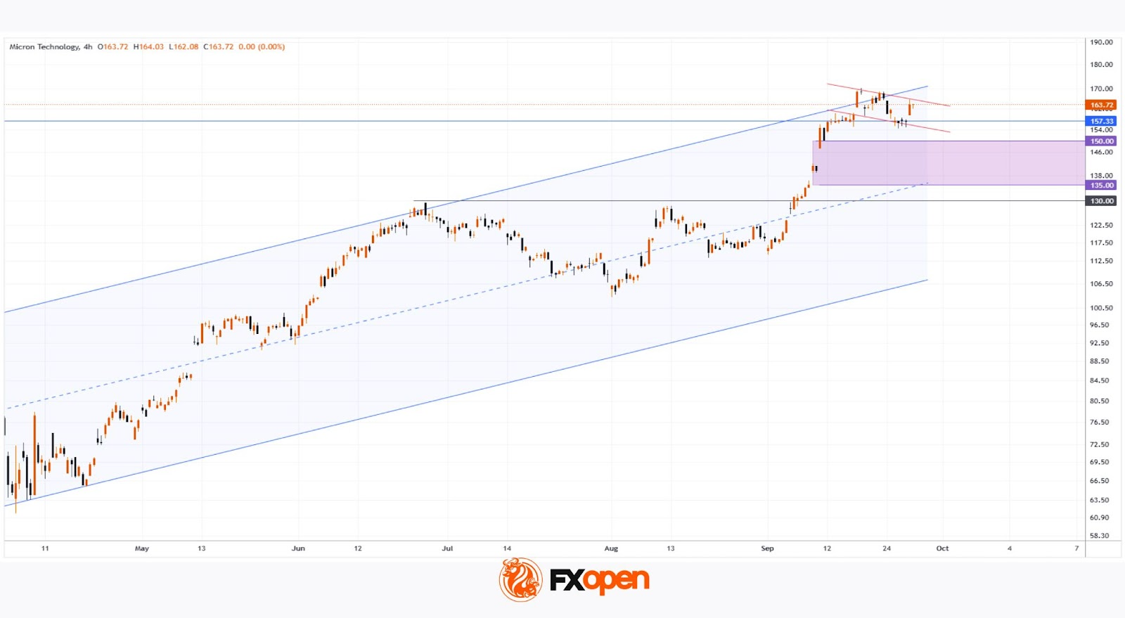 Since early April, Micron shares have shown staggering growth of approximately 150%, with: