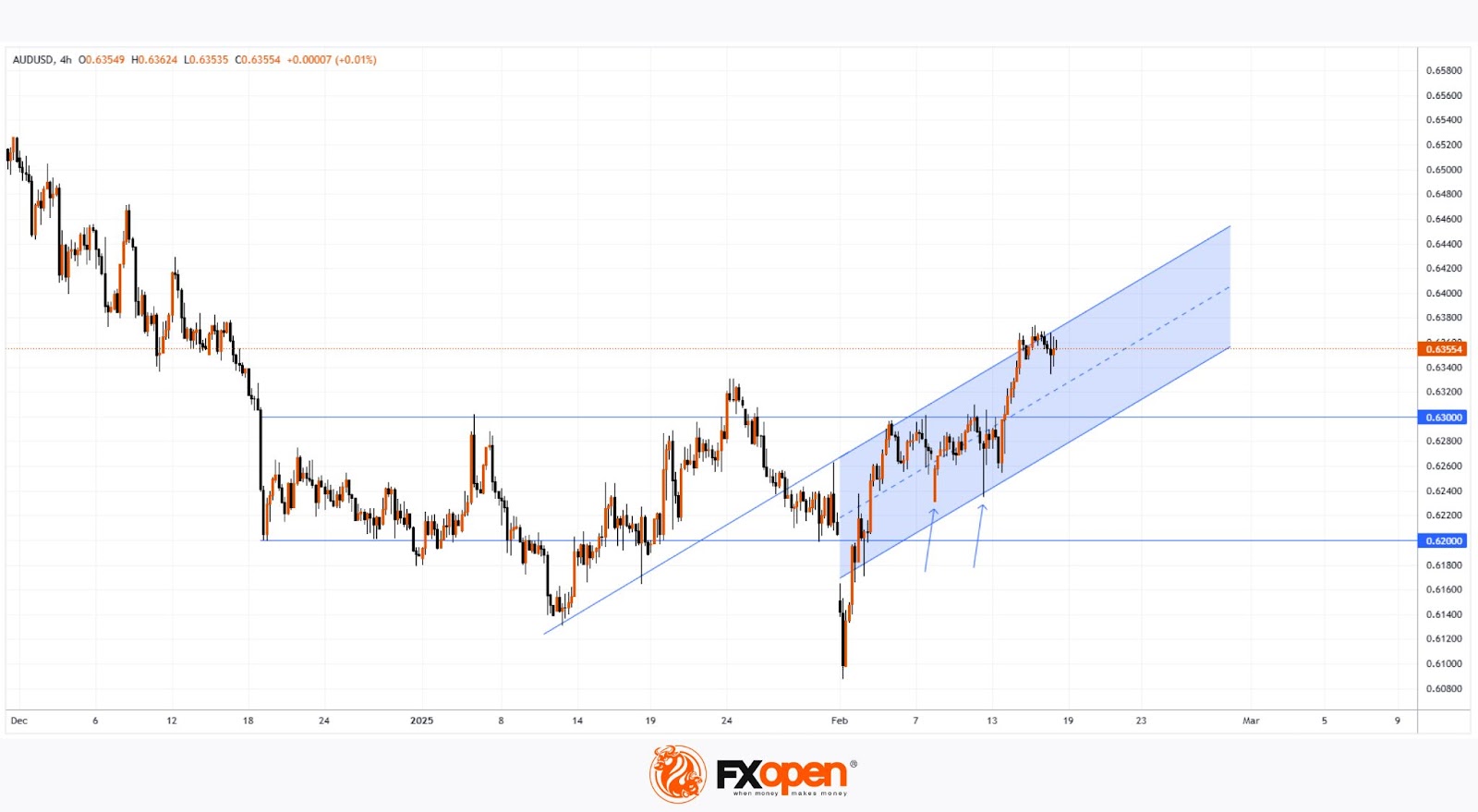 Since mid-December, the AUD/USD pair has mostly traded within the 0.6200–0.6300 range, except for early February’s sharp drop when Trump’s tariff policies shook currency markets.