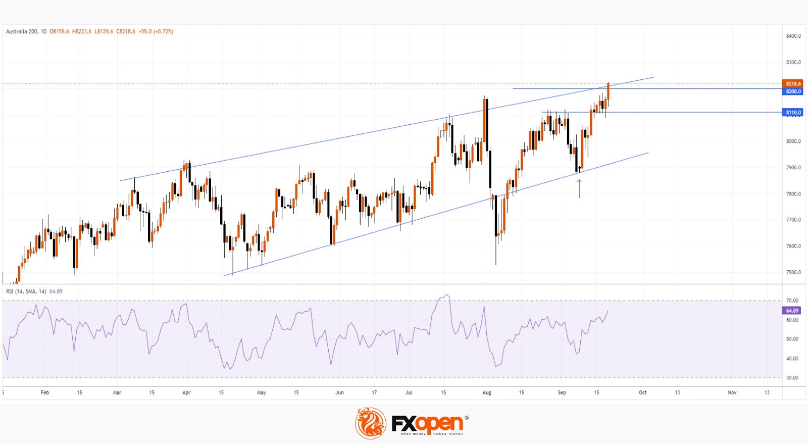 As seen on the S&P/ASX 200 chart (Australia 200 on FXOpen), today’s candle surpassed the 8200 level, marking a new all-time high.