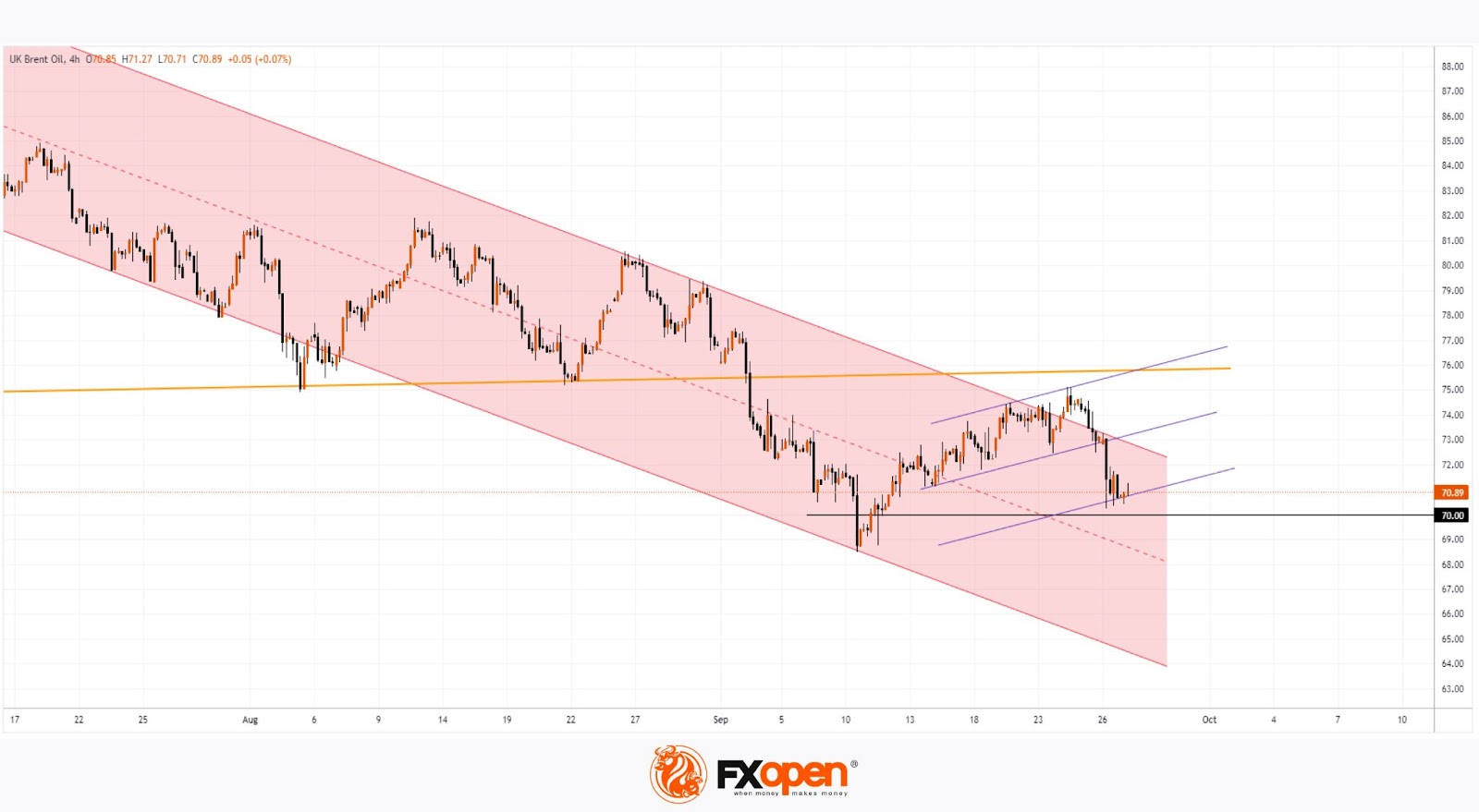 When analysing the oil market on the XBR/USD chart on 4th September, with Brent crude trading near its yearly low, we: