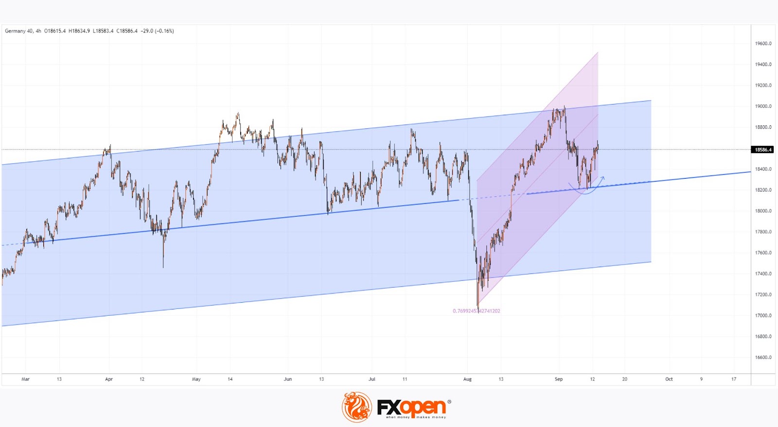 Investors may feel optimistic, expecting that this autumn demand forces could lift the DAX 40 (Germany 40 mini on FXOpen) towards the upper boundary of the channel.