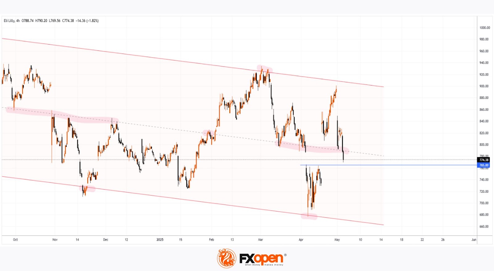 → However, since the start of May, the LLY stock price has dropped more than 15% — the closing price on the last trading day of April was around $895, while today the share is trading near $775.