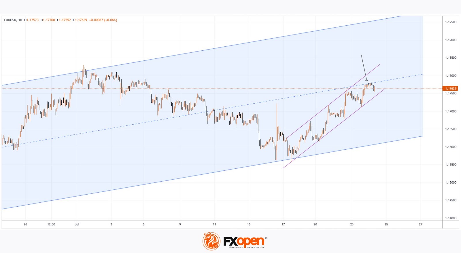 In anticipation of these events, the EUR/USD exchange rate has risen above the 1.1770 level for the first time since 7 July. Bullish sentiment is also being supported by expectations of a potential trade agreement between the United States and the European Union. According to Reuters, both sides are reportedly moving towards a deal that may include a 15% base tariff on EU goods entering the US, with certain exemptions.