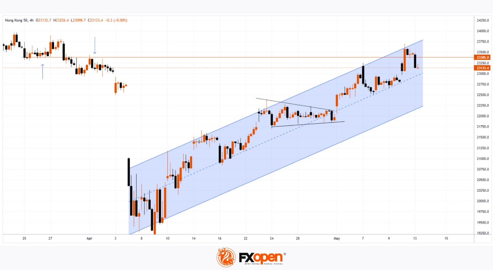 Yesterday, Hong Kong’s Hang Seng Index (Hong Kong 50 on FXOpen) climbed above the 23,600 mark, supported by progress made during US–China tariff negotiations.