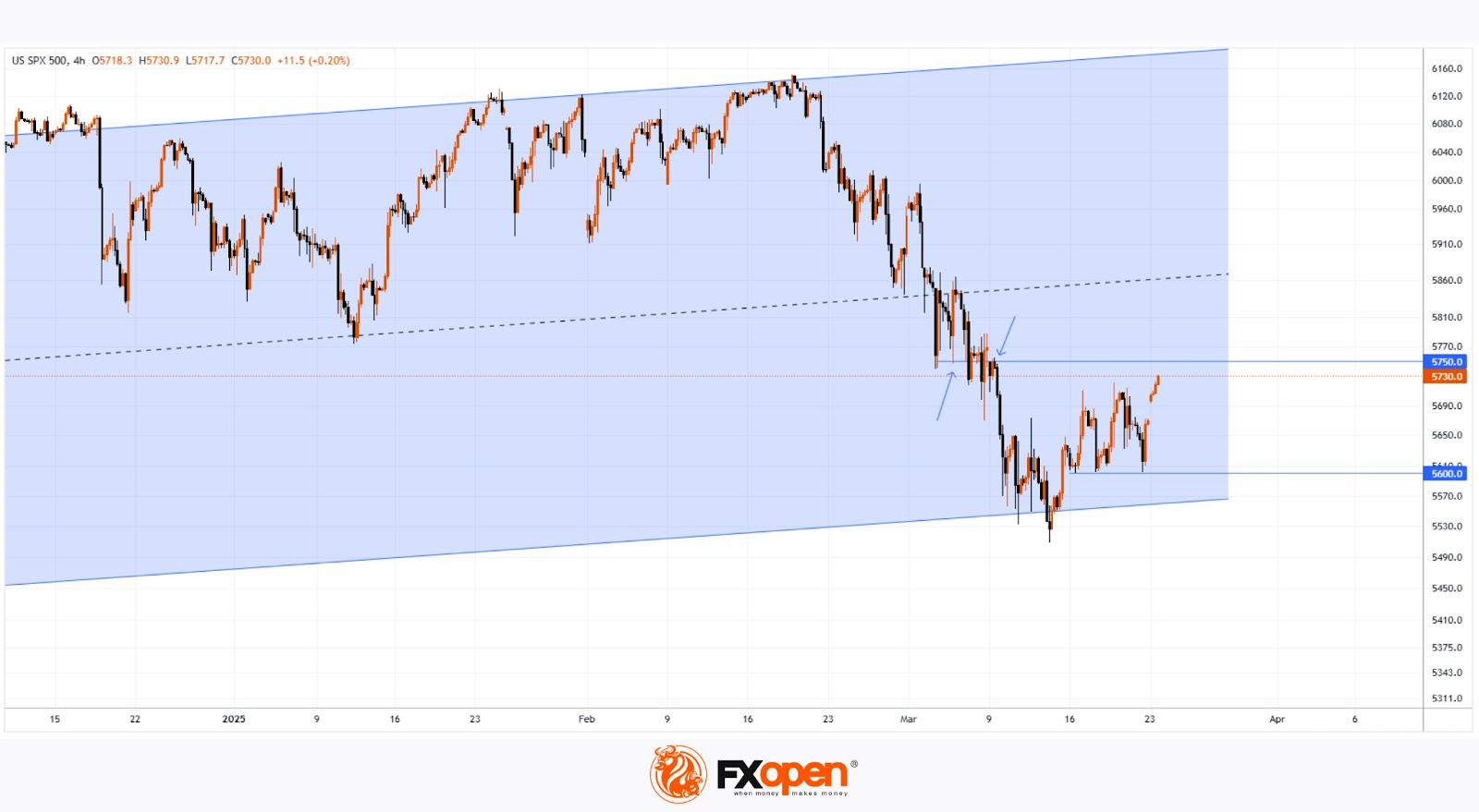 As a result, sentiment appears to have shifted towards optimism, with the S&P 500 index (US SPX 500 mini on FXOpen) trading approximately 4% above this month’s low.