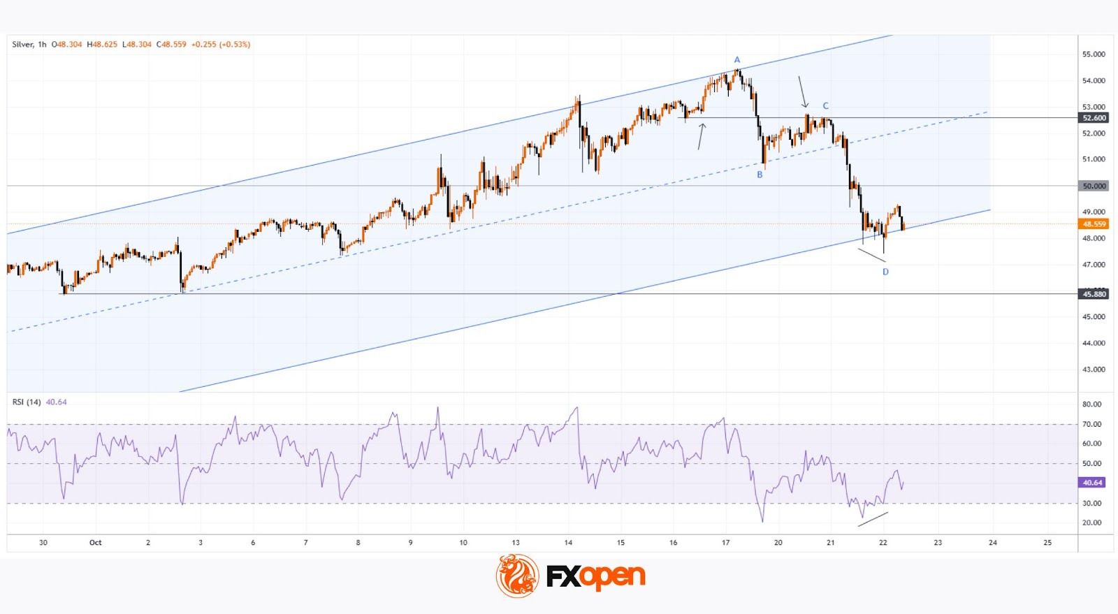 → Silver formed a bearish ABCD pattern and broke below the key $50 psychological level.