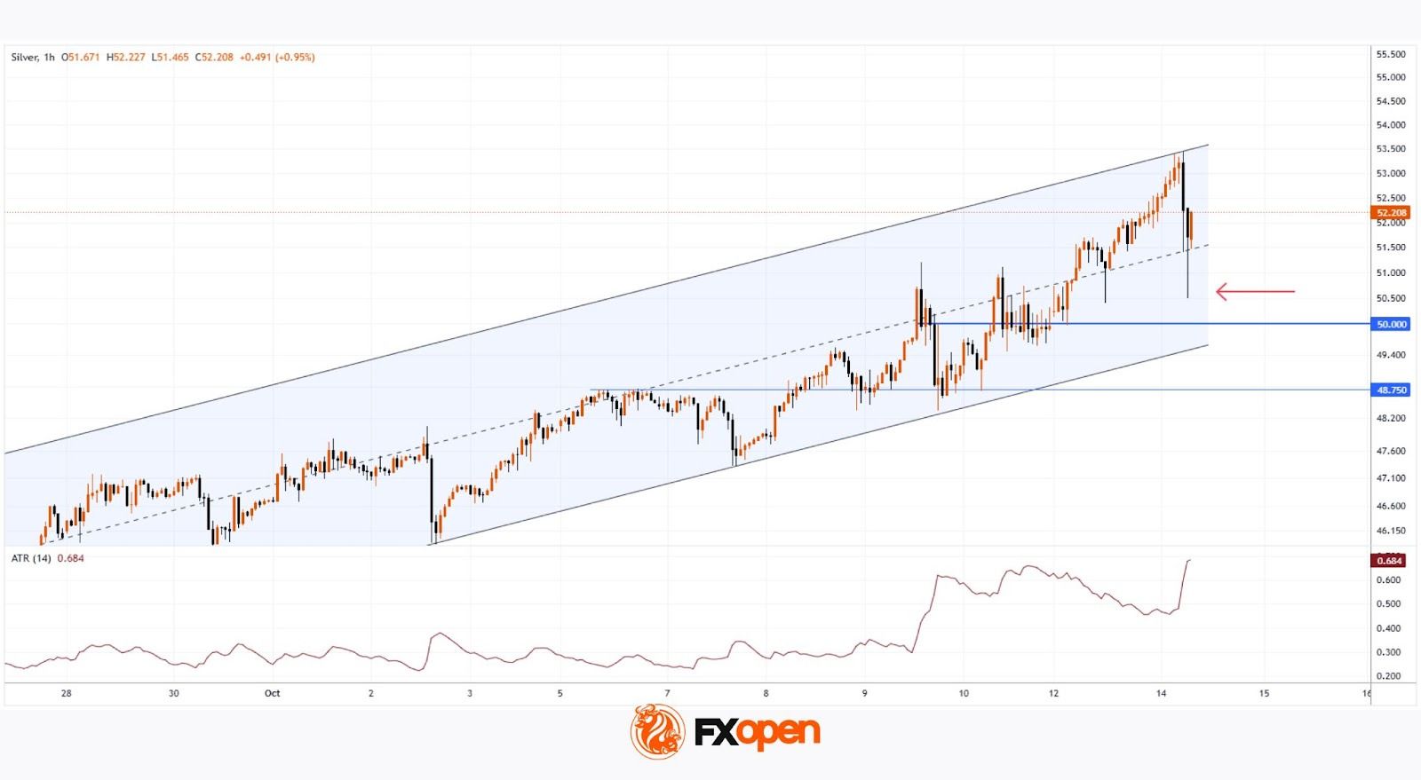 → The rise in the ATR indicator became evident as the market broke through the key psychological level of $50 per ounce.