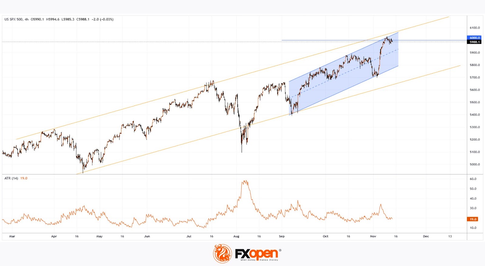 The ATR indicator on the S&P 500’s 4-hour chart (US SPX 500 mini on FXOpen) currently shows a reduction in price volatility.