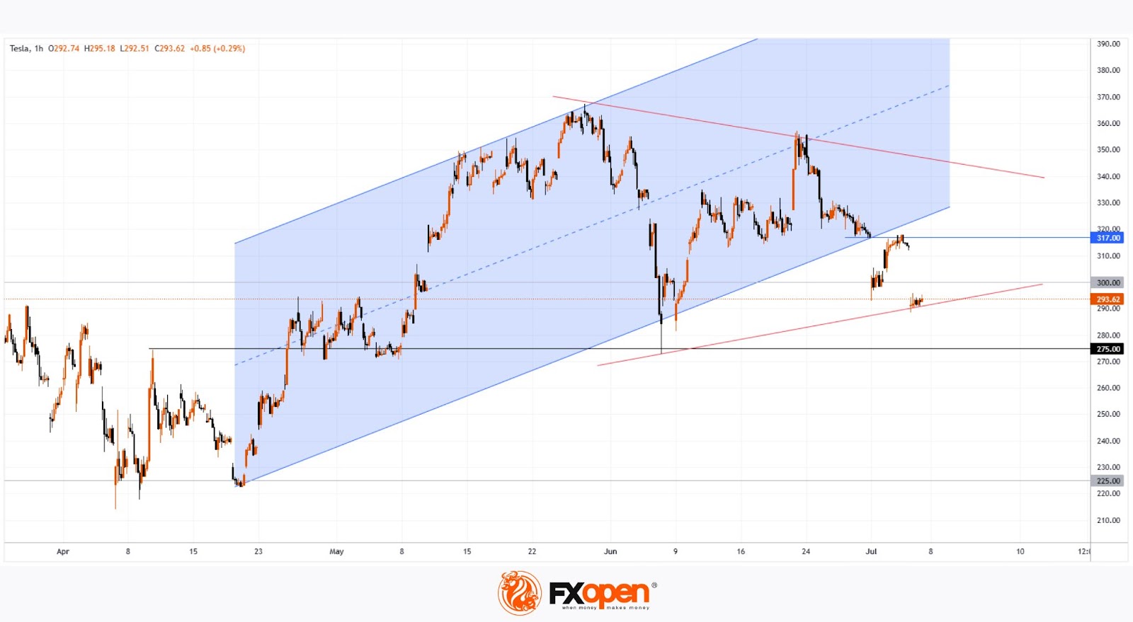 Trump criticised his former ally’s move on his Truth Social platform, and investors are increasingly concerned about the potential impact on Tesla’s business. Tesla shares (TSLA) fell by more than 6.5% yesterday, accompanied by a broad bearish gap.