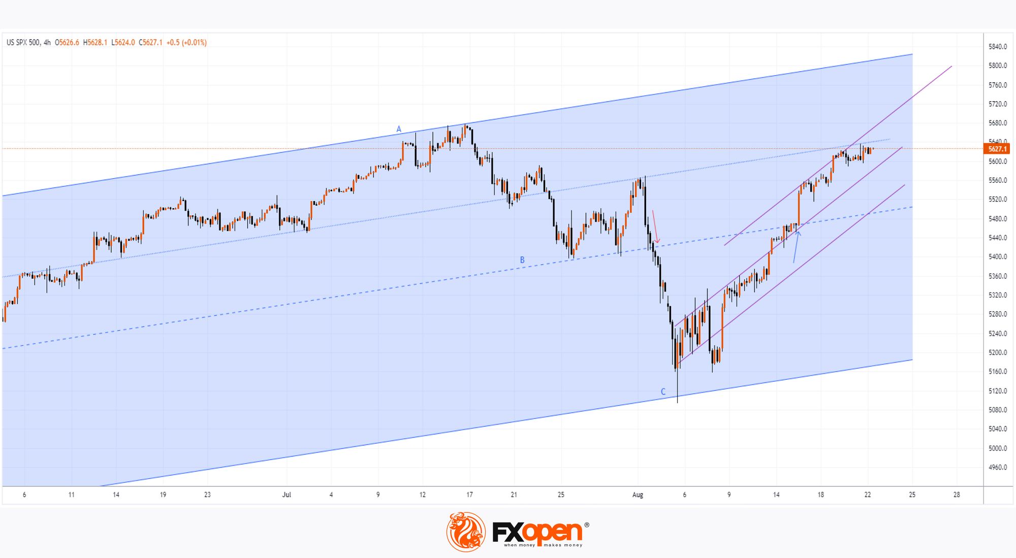 Thus, it is reasonable to assume that bulls have regained control of the market after the sharp decline in the S&P 500 (US SPX 500 mini on FXOpen) in early August. If the sentiment remains unchanged, we could see attempts to reach a new historical high.