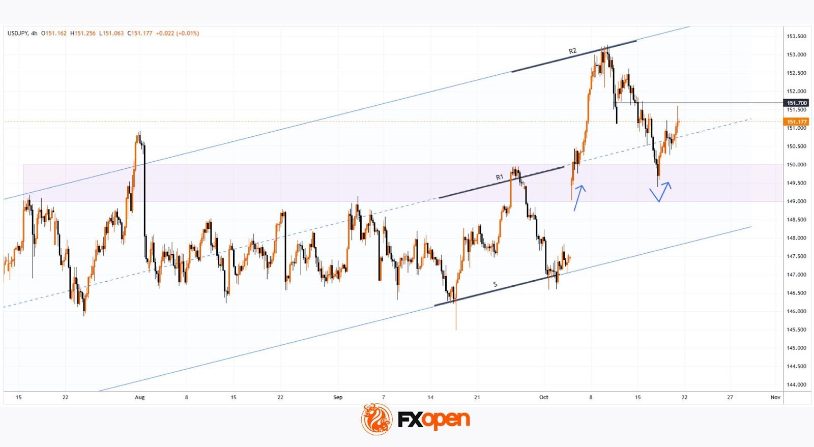 → Price action between 15 and 21 October indicates that sellers remain in control near the 151.7 level.