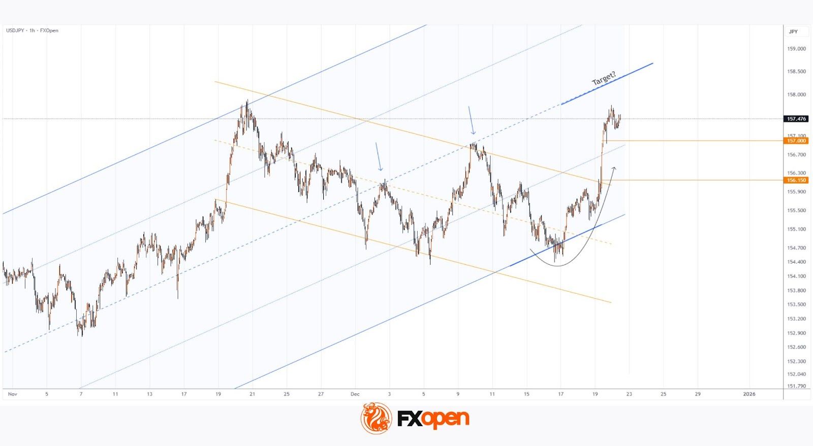On 15 December, we highlighted that USD/JPY was sliding towards a key support area near the lower boundary of its ascending channel.