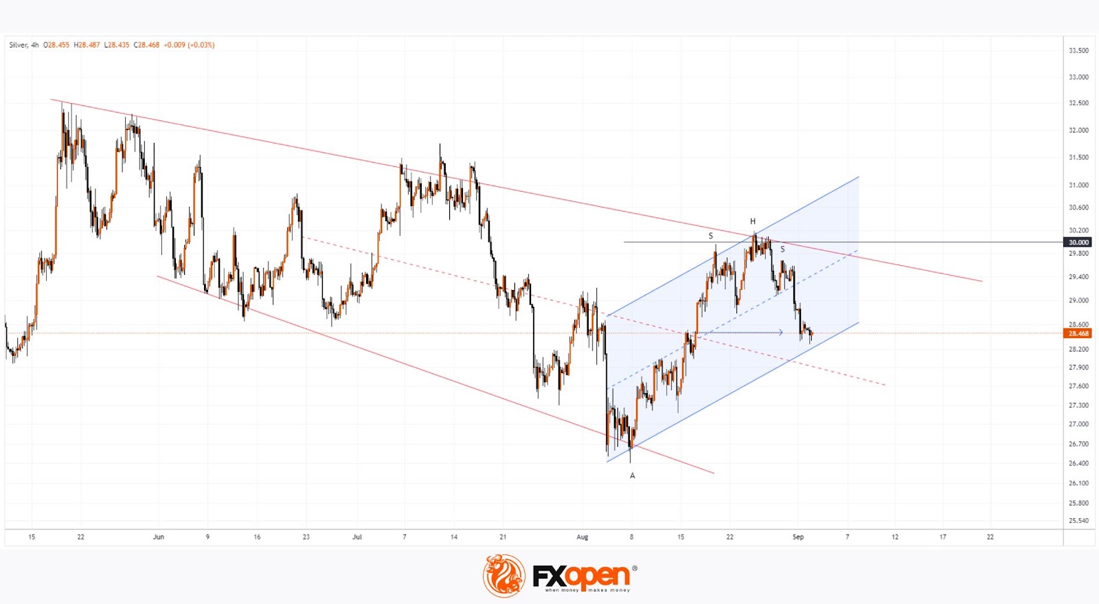 Therefore, it is possible that the bulls may try to regain control and make a new attempt to push the price towards the $30 level. Whether this scenario plays out will largely depend on the fundamental backdrop. On Friday, 6 September, at 15:30 GMT+3, US labour market data will be released – this event could have a significant impact on the price of silver.