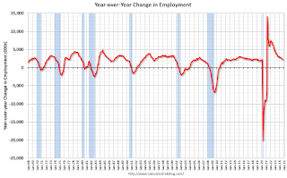 In October, the year-over-year change was 2.17 million jobs. Employment was up solidly year-over-year (Although the annual benchmark revision will lower the year-over-year change).