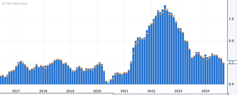 US inflation metrics landed as expected, with the forecast of year-on-year inflation dropping from 2.9% to 2.5%, standing on track for the Fed’s 2% target rate.