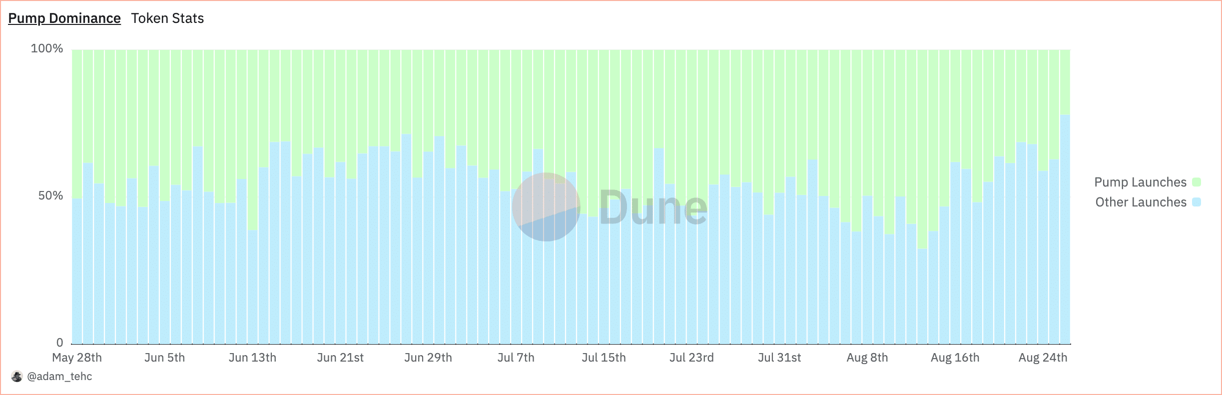 Pump.fun is the leader in Solana’s memecoin ecosystem and holds 50% of the market share. It achieved this by streamlining token launches and making them both quick and easy. It also focused on ensuring a fair process for creating and trading tokens, avoiding problems like presales or team allocations.