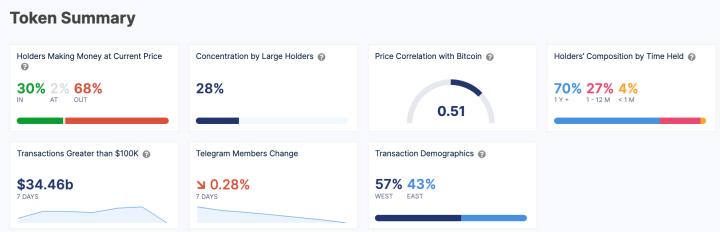 IntoTheBlock data shows that only 30% of ADA holders are currently in profit, which means a significant portion of the market is experiencing losses.