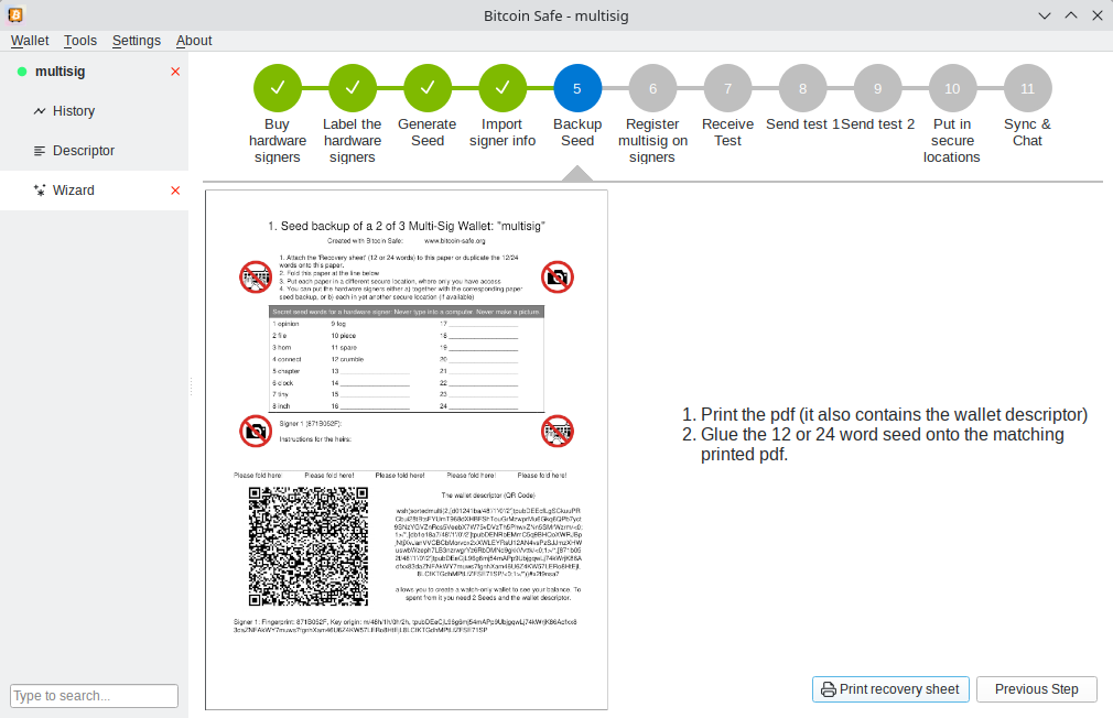 The wallet’s multisig setup wizard generates PDFs with wallet descriptors, including send and receive tests for verification. “After you’re done with this wizard, you can be sure that it’s set up correctly,” Griffin said. This ensures reliable configuration, making multisig accessible without compromising security.