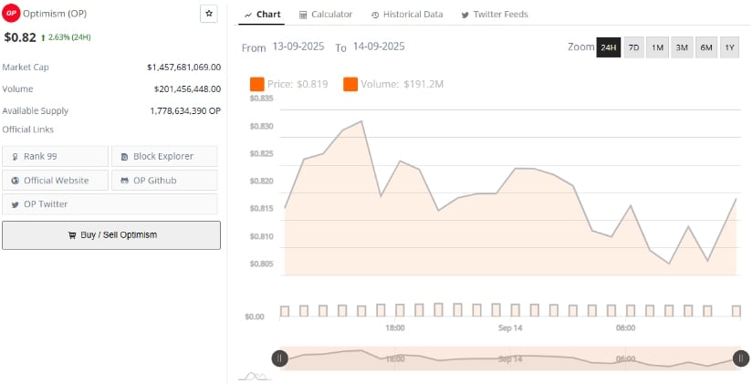 Optimism has spent months trading under a descending trendline that kept buyers from regaining momentum. However, recent sessions have brought the token close to the $0.85 resistance level, a point seen as a key pivot for the next market move.