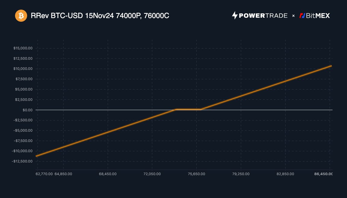 A bull call spread could involve buying a call at a $76k strike price and selling a call at a $78k strike.