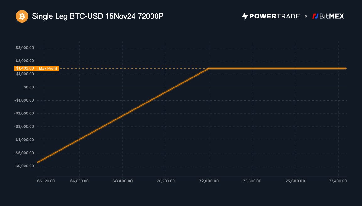 If Bitcoin does not go below $72k on expiry, you would collect a nice premium of $1,432 despite not having bought any Bitcoin.