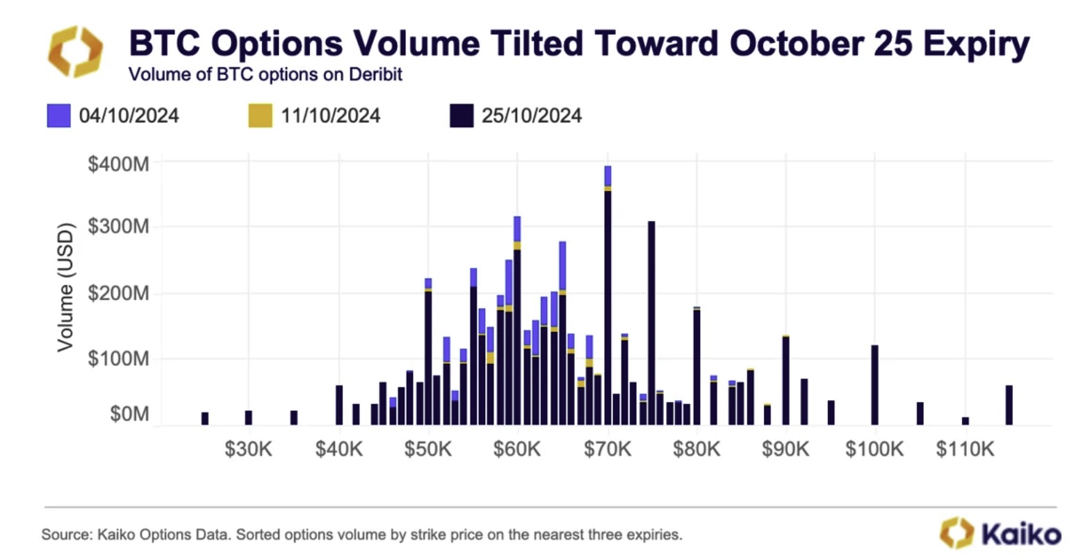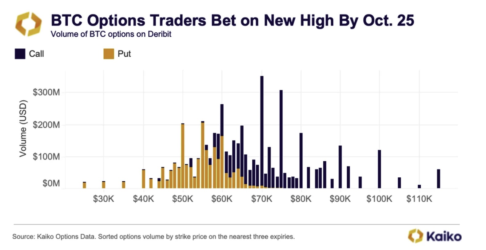In a new report, Kaiko finds that derivatives traders are betting hundreds of millions of dollars on the crypto options exchange Deribit that Bitcoin is going to regain the $70,000 range this month.