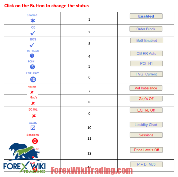 - Order Block (OB): Identify order blocks swiftly by activating or deactivating this feature.