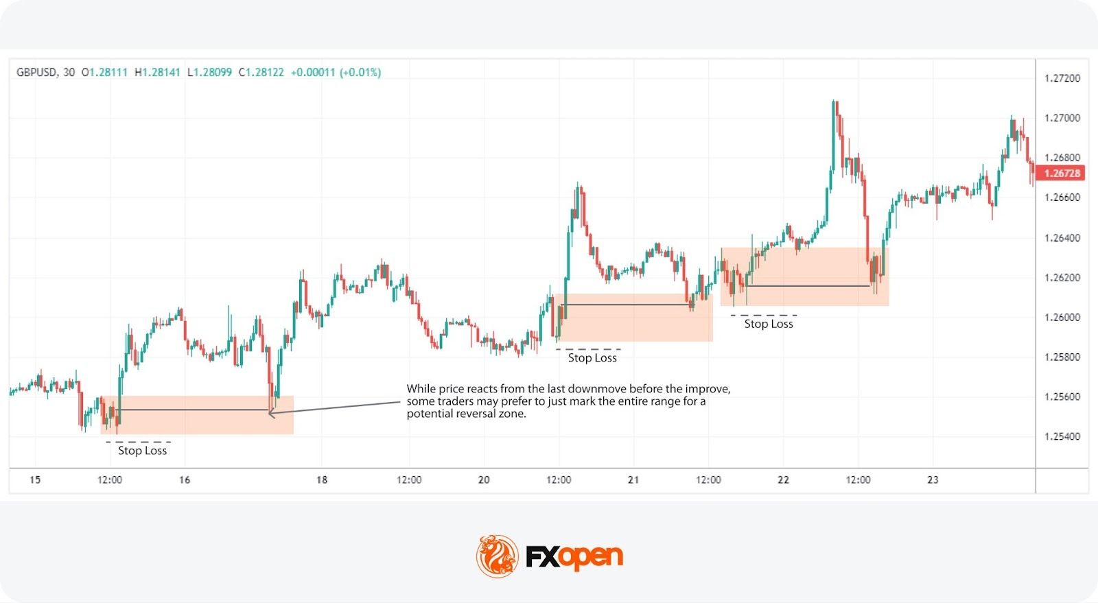 Traders often start by analysing historical price charts to locate this pattern. Typically, these are found where there was significant trading activity, often in the form of a consolidation, followed by a strong directional price move.