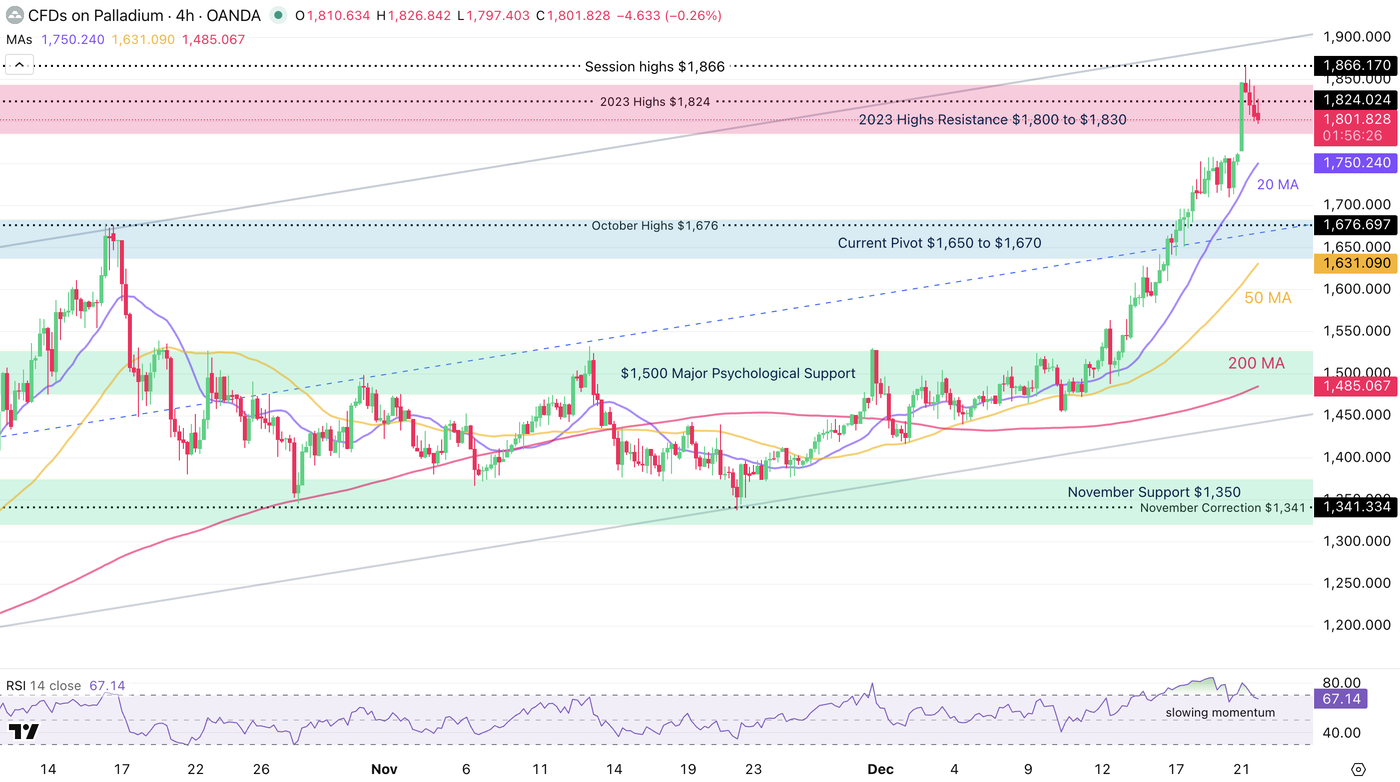 Officially breaching the $1,800 psychological level and its 2023 highs, the move got quite aggressive to $1,866 highs before seeing a consequent profit-taking move.