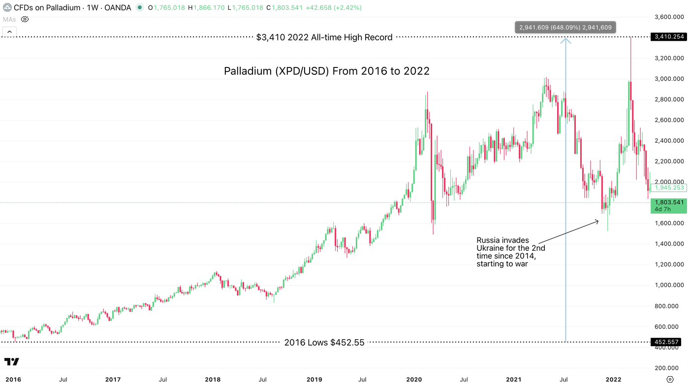 From 2016 to 2021, Palladium staged a massive run from gaining 630%, gathering some attention from Commodity traders.