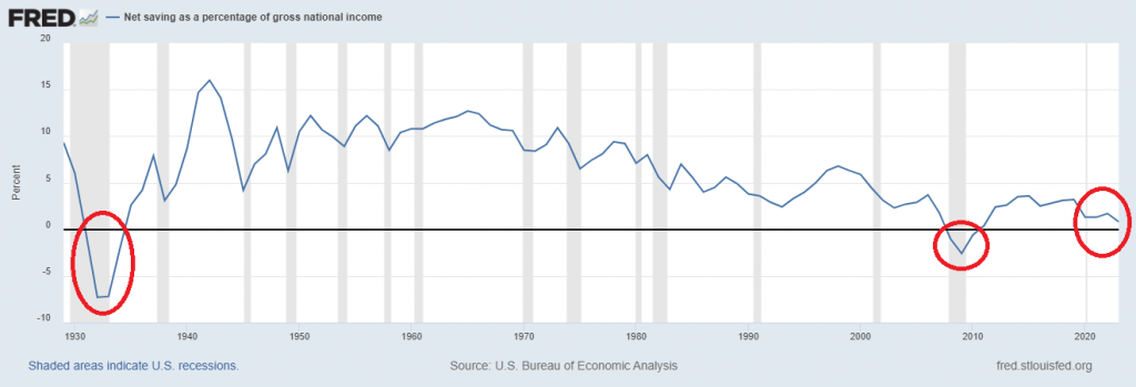 US net savings as a percentage of GDP across households, businesses, and the government have dipped into the red for six quarters straight. Translation: Americans are spending way more than they’re earning. We’ve only seen this kind of savings slump twice since 1930 — back in the crisis years 2008 and 2020. And here’s a kicker: over the past year, the US government’s deficit ballooned to a whopping $2.1 trillion with spending soaring to $6.9 trillion. Meanwhile, the personal savings rate has shrunk to a mere 2.9%, nearly scraping the bottom since the 2008 financial meltdown. We’re talking about a national savings crisis, folks.
