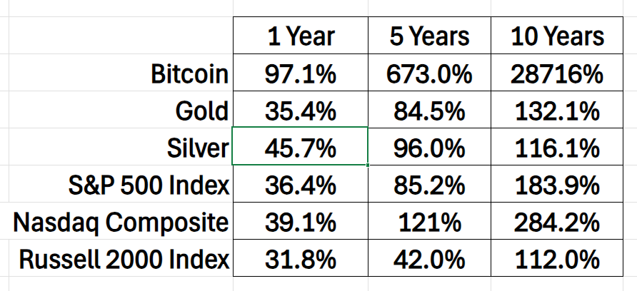 Over the same period, Gold has vaulted an even more astounding 7,769%, reflecting a compounded annual growth rate of 8.76%.