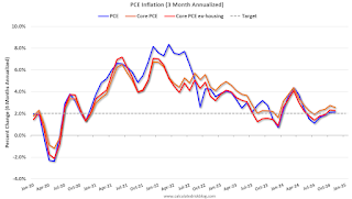 PCE Prices 6-Month AnnualizedThe second graph shows PCE prices, Core PCE prices and Core ex-housing over the last 3 months (annualized):
