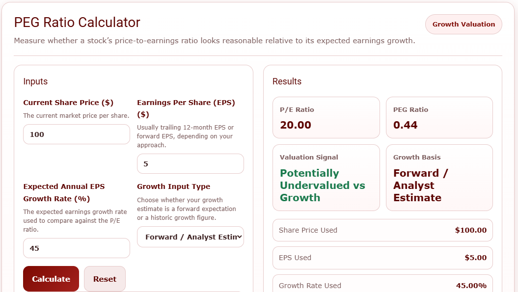 Price/Earnings to Growth (PEG) Ratio Calculator