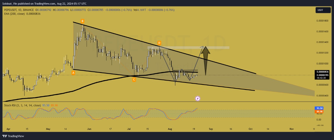 The whales and new users are on to something, as the Pepe Coin price chart hints at the possibility of a 68% surge in price in the future.