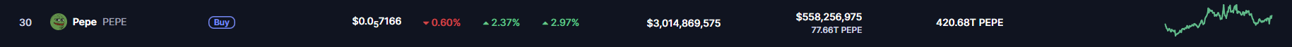 - Handelsvolumen (24h): 558 Millionen $ (77,81T PEPE)