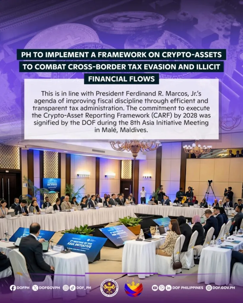 During the 8th Asia Initiative Meeting held in Malé, Maldives, Finance Undersecretary Charlito Martin Mendoza formalized the country’s commitment to adopt the Crypto-Asset Reporting Framework (CARF), developed by the Organisation for Economic Co-operation and Development (OECD).