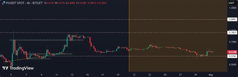 - Range-Bound Consolidation: Most likely in the near term, Pi may continue to trade between $0.58 and $0.66 as accumulation continues and the market waits for stronger cues.