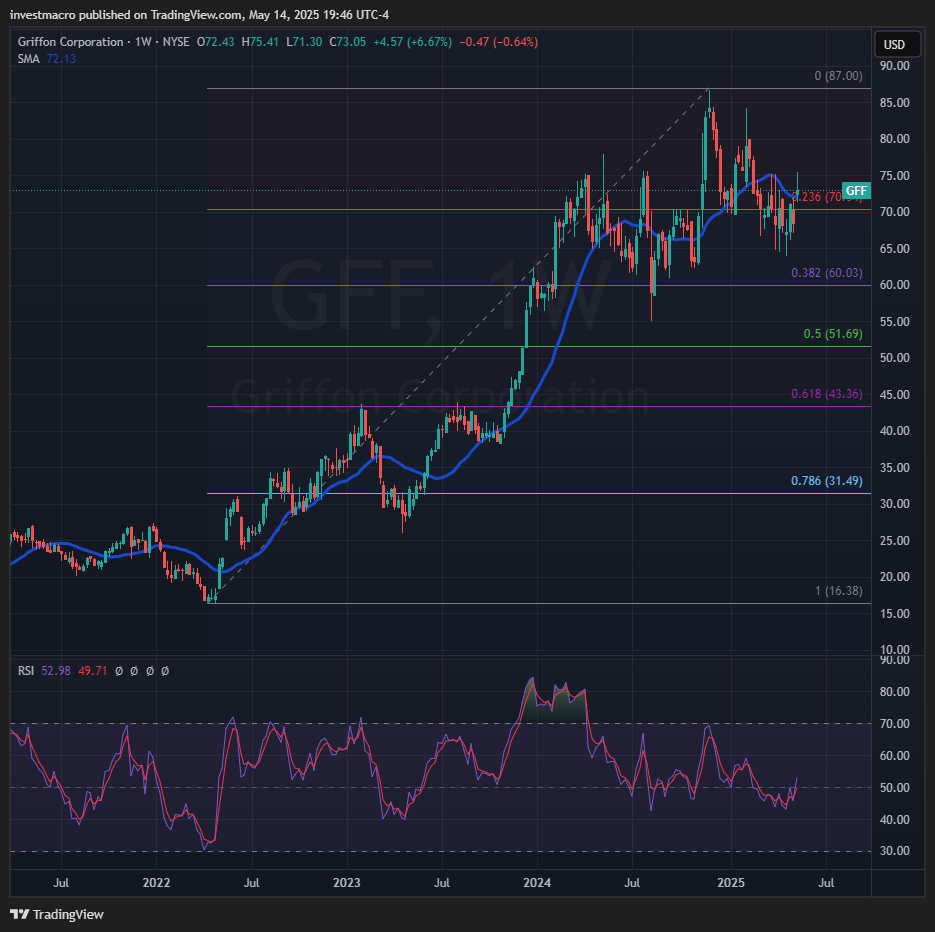 Griffon Corporation (Symbol: GFF) was recently added to our Cosmic Rays WatchList. GFF scored a 56 in our fundamental rating system on May 9th, 2025.